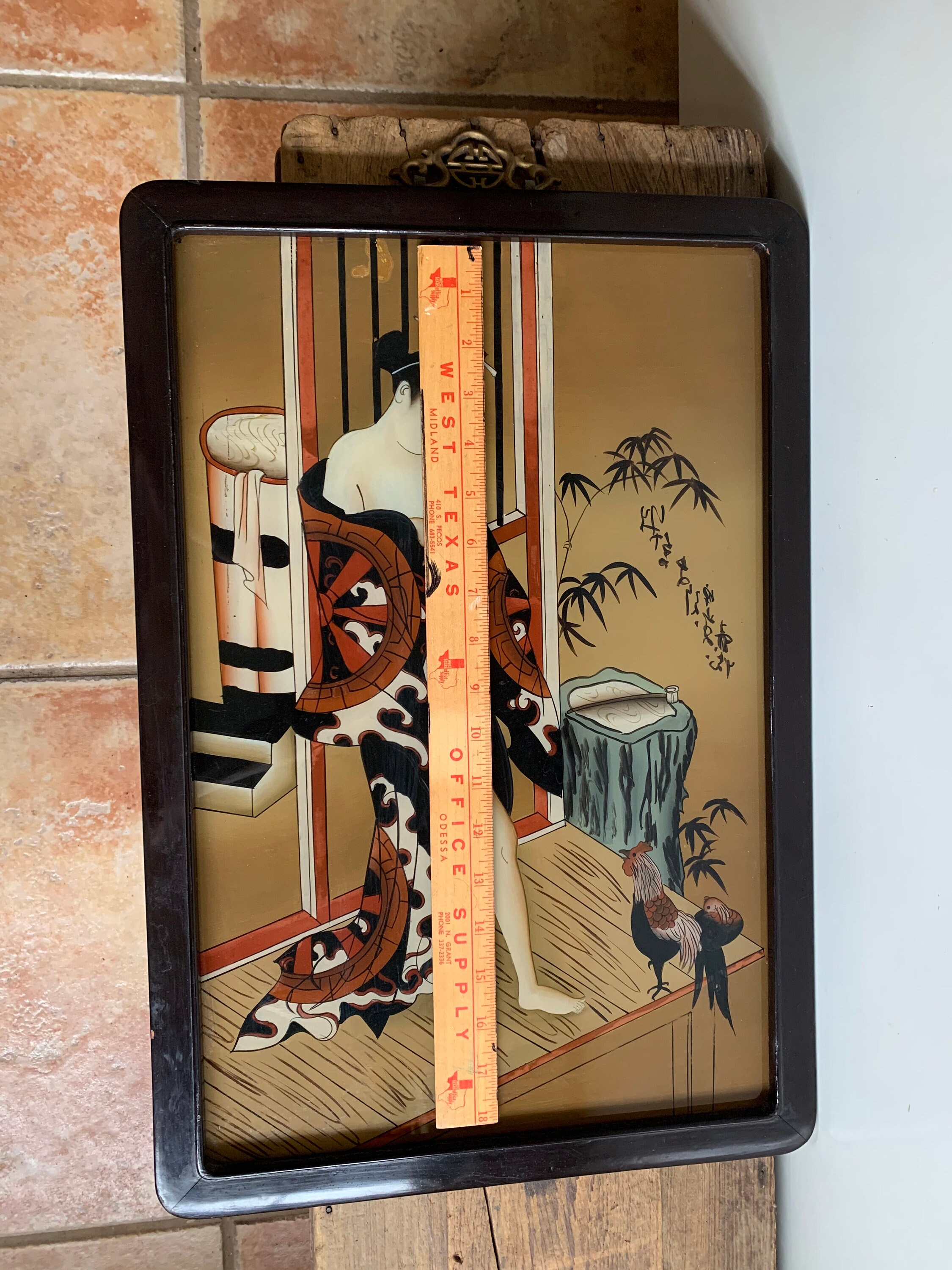 Midcentury Reversed Painting Geisha Lacquered Mahogany Framed Etsy Uk